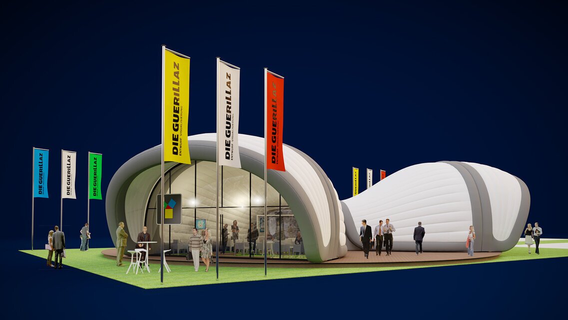 Η παραπάνω εικόνα με ρο εκθεσιακό περίπτερο είναι ένα στιγμιότυπο από μία παρουσίαση πραγματικού χρόνου. Εσείς ή/και ο πελάτης σας μπορείτε να περπατήσετε διαδραστικά μέσα σε μια τέτοια σκηνή ενεργοποιώντας ακόμη και εφέ φωτισμού, προβολές βίντεο και κινούμενων εικόνων σε πραγματικό χρόνο.
